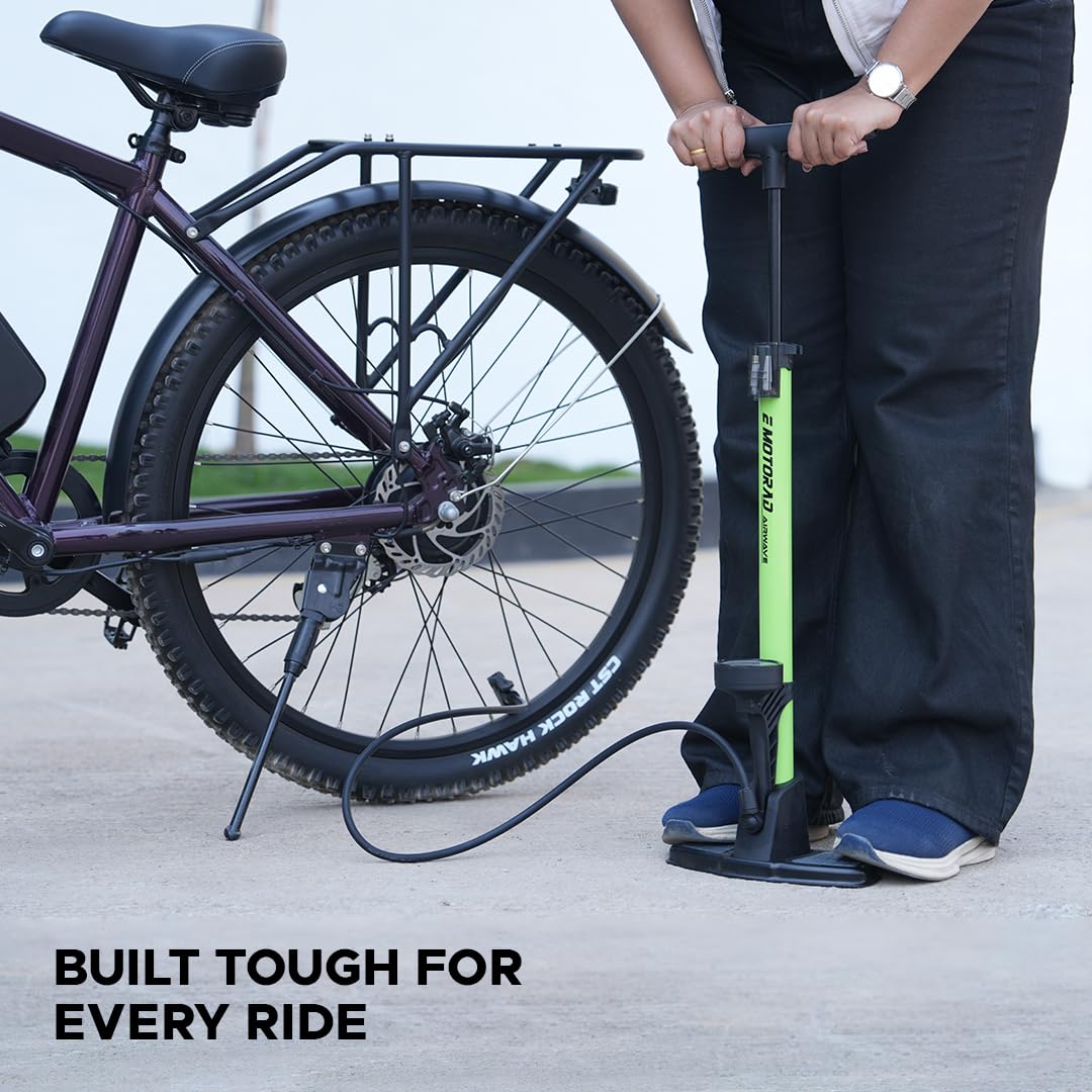 • Colorful Medium-Size Gauge: The pump features a bright, colorful gauge with clear pressure indicators for accurate readings at a glance. Its easy-to-read design helps you monitor pressure effectively, reducing the chances of over or under-inflation.
