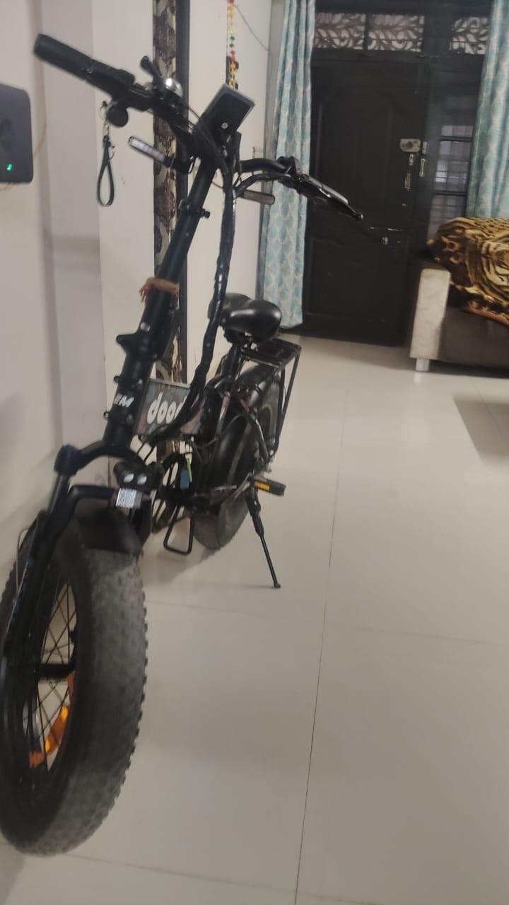 The EMotorad Doodle Pro (V4) is a foldable fat-tyre e-bike engineered for India’s roads. Featuring a 36V 12.75Ah Li-ion removable battery, 250W rear hub motor, 7-speed Shimano gears and a C6+ display with USB, it delivers up to 60 km range and 25 km/h speed with comfort and style.
